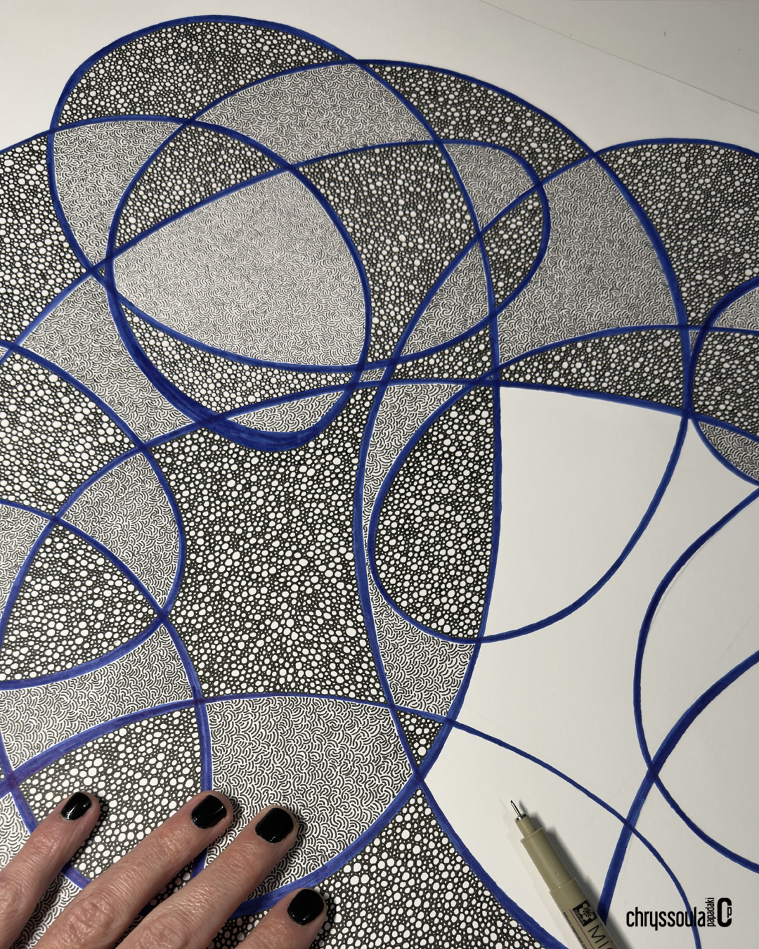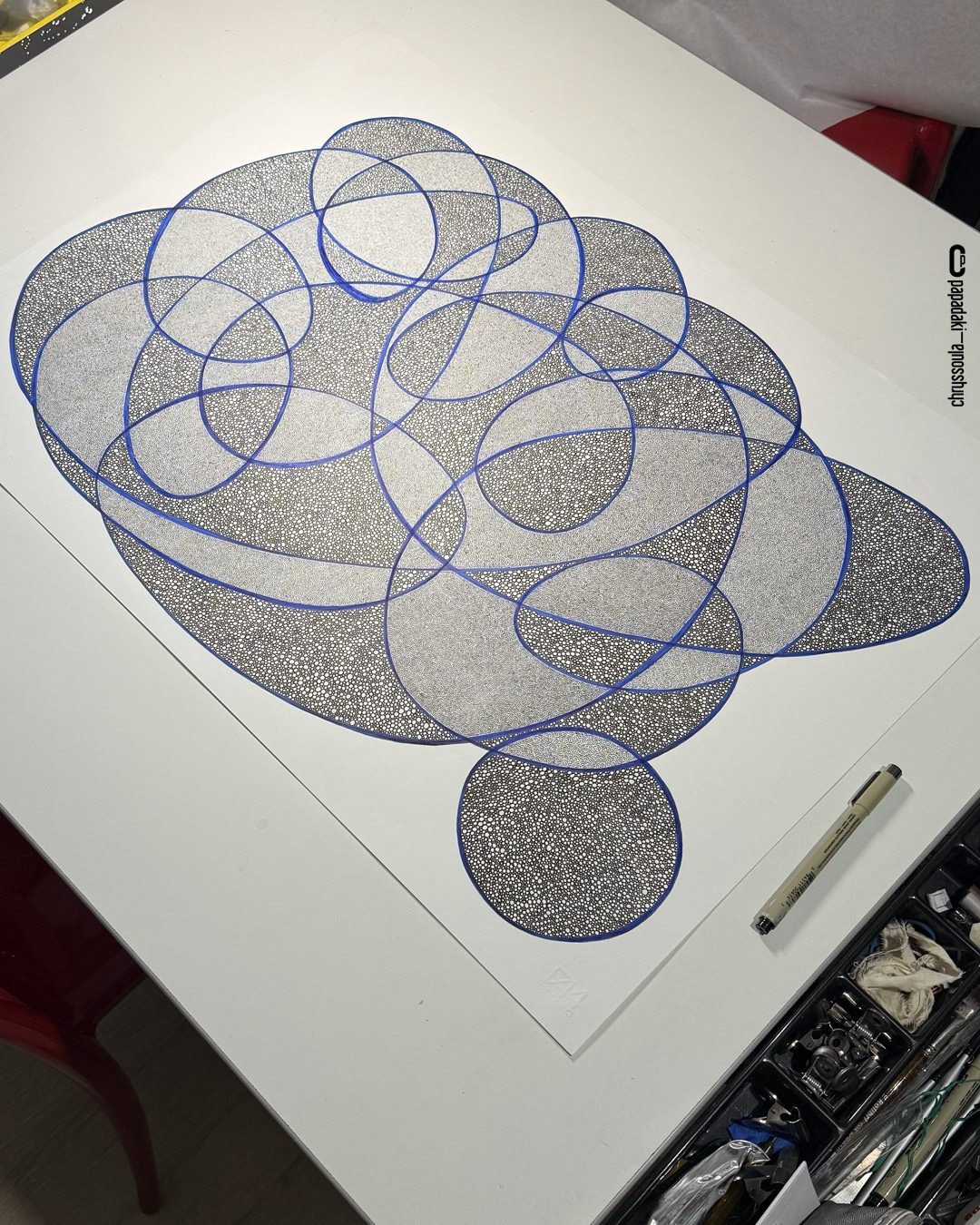 • Navigating Existence, acrylic & ink markers on paper, 100x70cm